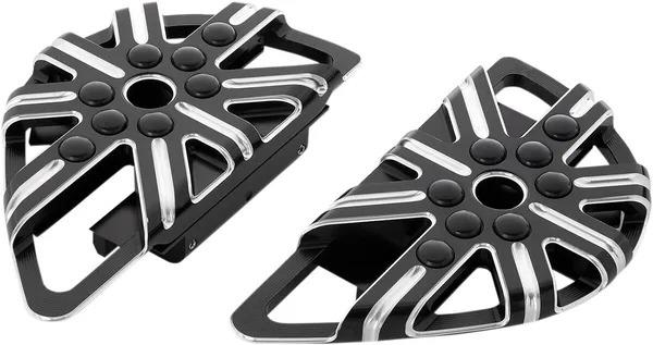 Hafif ve şeffaf tasarım, üst ve yan kısımlarında CNC ile işlenmiş detay kesimleri içerir. Kalıp dövme alüminyumdan (forged billet aluminum) üretilmiştir. Sürücü tabanı, üç montaj noktası ve yaklaşık 7,5 cm (3 inç) ayarlanabilirlik sunar, böylece sürüş pozisyonuna göre kişiselleştirilebilir. Stok tabanlardan daha uzun tasarımı, sürücüye ekstra ayak alanı ve konfor sağlar. Tüm montaj donanımları pakete dahildir. Yolcu ayak peg’lerine sahip modeller, montaj için orijinal (OEM) Harley-Davidson aksesuar taban montaj kitlerini kullanmalıdır.
