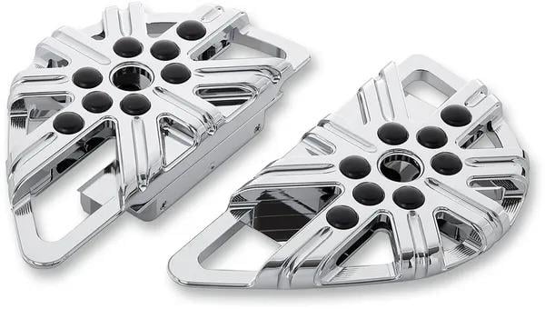 Hafif ve şeffaf tasarım, üst ve yan kısımlarında CNC ile işlenmiş detay kesimleri içerir. Kalıp dövme alüminyumdan (forged billet aluminum) üretilmiştir. Sürücü tabanı, üç montaj noktası ve yaklaşık 7,5 cm (3 inç) ayarlanabilirlik sunar, böylece sürüş pozisyonuna göre kişiselleştirilebilir. Stok tabanlardan daha uzun tasarımı, sürücüye ekstra ayak alanı ve konfor sağlar. Tüm montaj donanımları pakete dahildir. Yolcu ayak peg’lerine sahip modeller, montaj için orijinal (OEM) Harley-Davidson aksesuar taban montaj kitlerini kullanmalıdır.