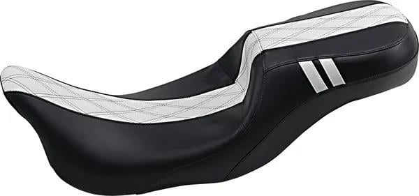 Renk: Siyah - Beyaz dikişli (Double Diamond) Malzeme: Premium vinil döşeme Model: Outcast Daddy Long Legs Tip: 2-Up (sürücü + yolcu) sele Üretim Yeri: ABD Teknik Özellikler: Tek parça kalıplı sünger taban, 16-gauge çelik plaka üzerine oturtulmuş ve toz boya ile kaplanmıştır. Ergonomik konturlar, uzun yol konforu sağlar ve sürücüye hareket özgürlüğü kazandırır. Uzun boylu sürücüler için özel olarak tasarlanmıştır; sürücüye yaklaşık 5 cm (2") ekstra bacak mesafesi sunar. Alt kısmı halı kaplıdır — çamurluğu çizilmelere karşı korur. Arkalıksız modeldir (without backrest).